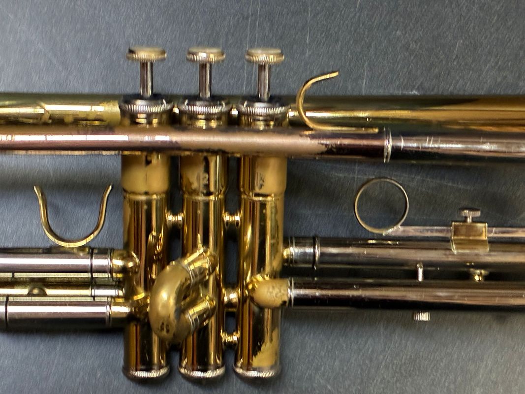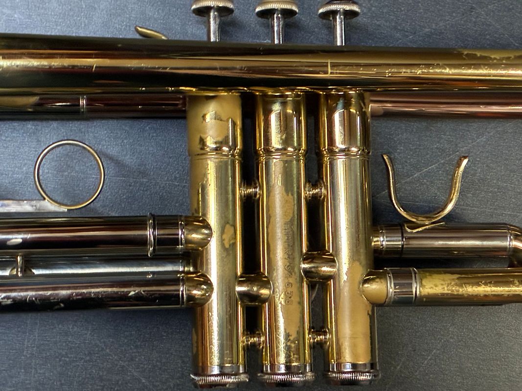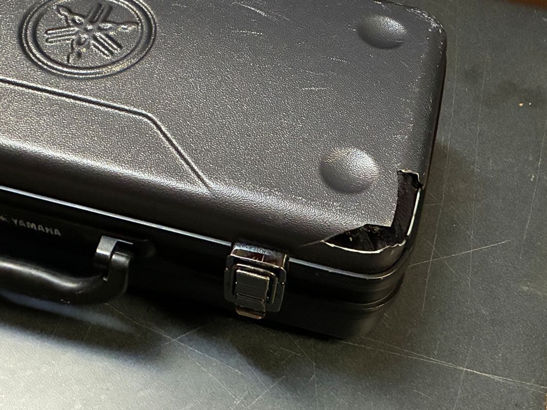 Instrument has cosmetic wear from regular use. This instrument has been serviced and thoroughly cleaned and is in good playing condition. The case has a small piece missing on one corner (see pic), and has various scuffs and scratches.
